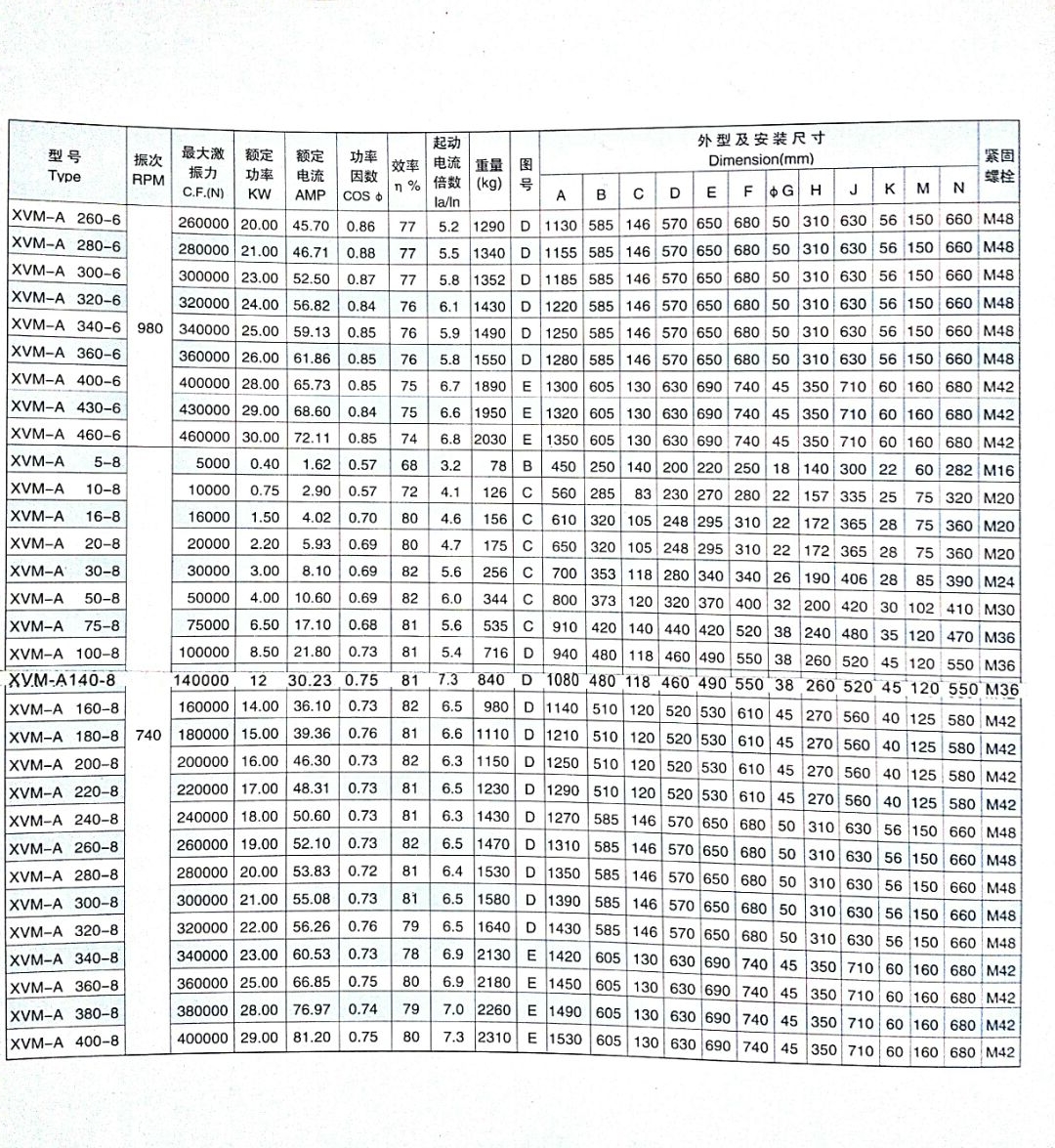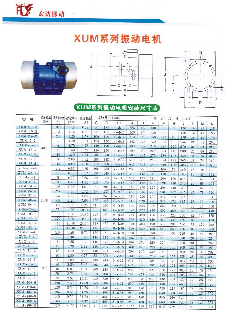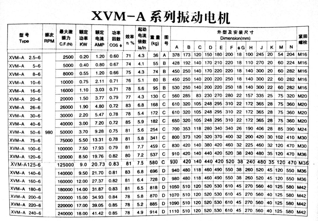 三、XVM-A振動電機的技術(shù)參數(shù):