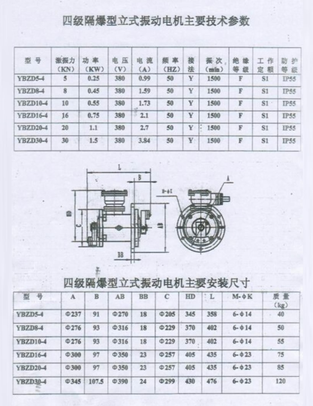 YBZD系列戶外隔爆型振動(dòng)三相異步電動(dòng)機(jī)(簡(jiǎn)稱防爆型振動(dòng)電機(jī)),其工作原理和通用型振動(dòng)電機(jī)類似,是利用兩端的偏心塊高速旋轉(zhuǎn)產(chǎn)生振動(dòng)力作為振動(dòng)源。該系列防爆振動(dòng)電機(jī)具有設(shè)計(jì)合理、結(jié)構(gòu)緊湊、激振效率高、節(jié)能、壽命長(zhǎng)、運(yùn)行可靠、安裝調(diào)試方便等優(yōu)點(diǎn)。可作為振動(dòng)料斗、振動(dòng)篩、圓振篩、振動(dòng)給料機(jī)、振動(dòng)輸送機(jī)的要求防爆環(huán)境工作振動(dòng)源。其防爆性能符合GB3836.2-2000《爆炸性氣體環(huán)境用電氣設(shè)備——隔爆型”d"》。防爆標(biāo)志為ExdⅡBT4,使用于Ⅱ類A、B級(jí)T1~T4組可燃性氣體或蒸汽與空氣形成的爆炸性混合物的場(chǎng)所。